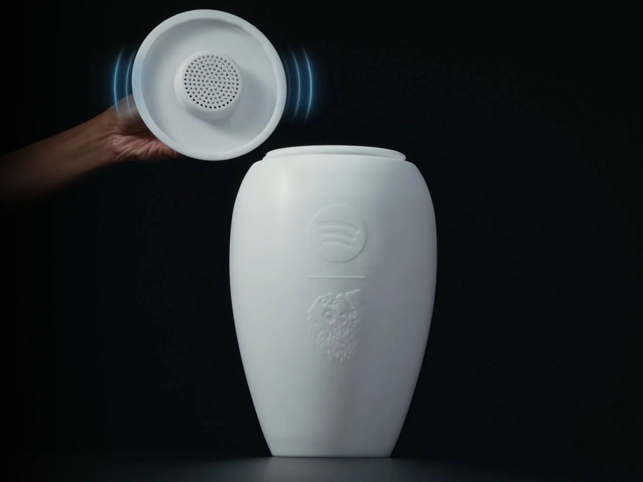 Đó là ý tưởng phía sau màn hợp tác táo bạo giữa Spotify và thương hiệu nước đóng lon Liquid Death, khi họ cùng ra mắt Eternal Playlist Urn - “bình tro cốt” đầu tiên trên thế giới được tích hợp loa Bluetooth, để âm nhạc tiếp tục vang lên đến tận vĩnh hằng…