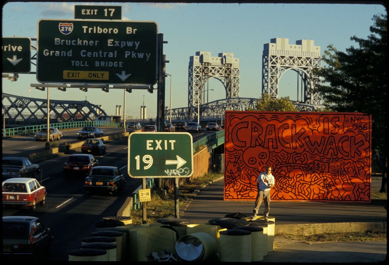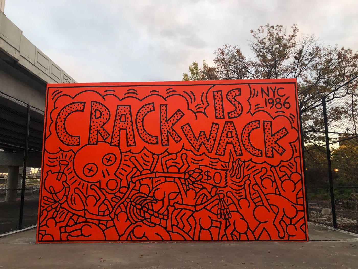 Được vẽ năm 1986 tại New York, bức mural với nền cam rực rỡ và dòng chữ lớn “CRACK IS WACK” là lời cảnh báo trực diện về tác hại của ma túy, đặc biệt trong thời kỳ “crack epidemic” lan rộng ở Mỹ.