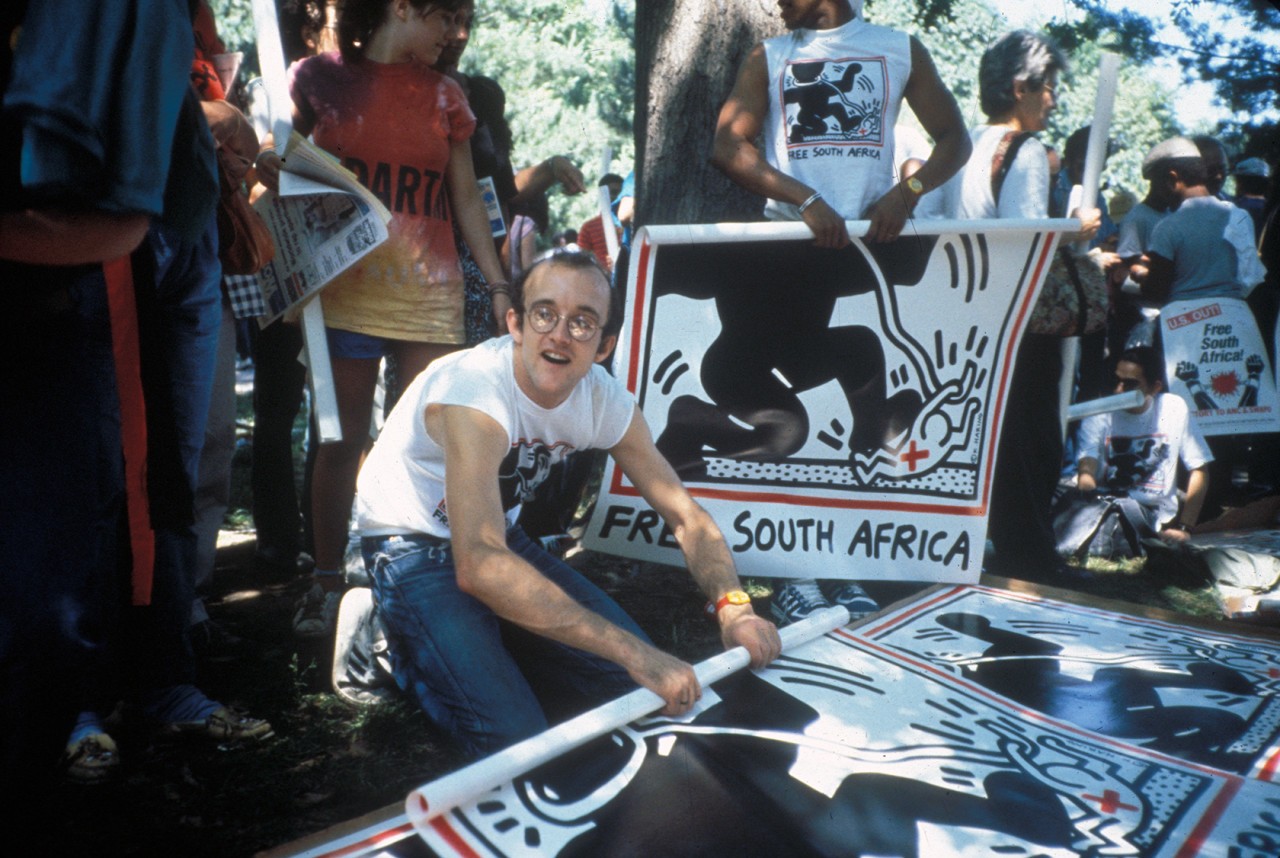“Free South Africa” là một trong những tác phẩm thể hiện rõ tinh thần hoạt động xã hội nhất của Keith Haring.